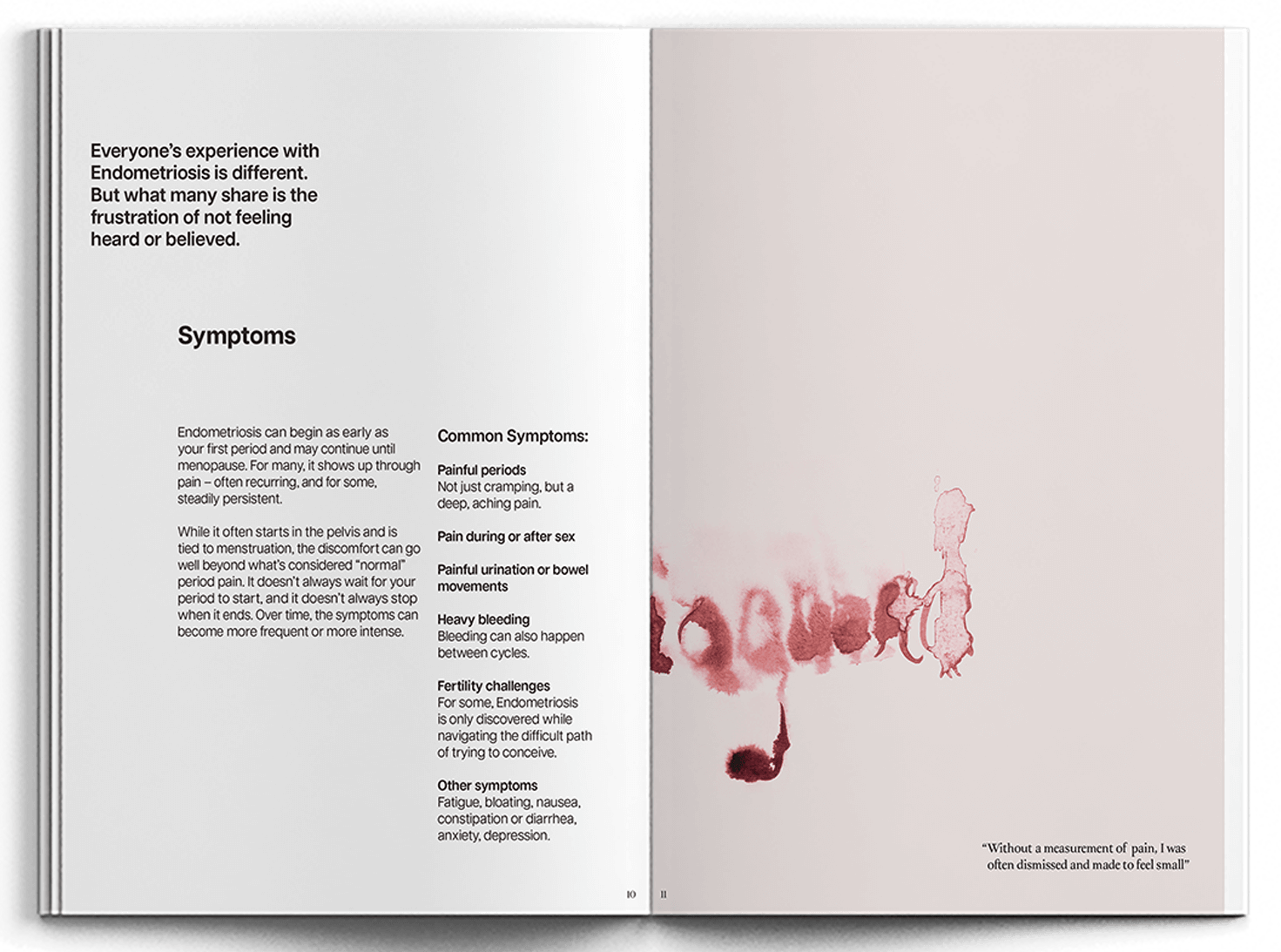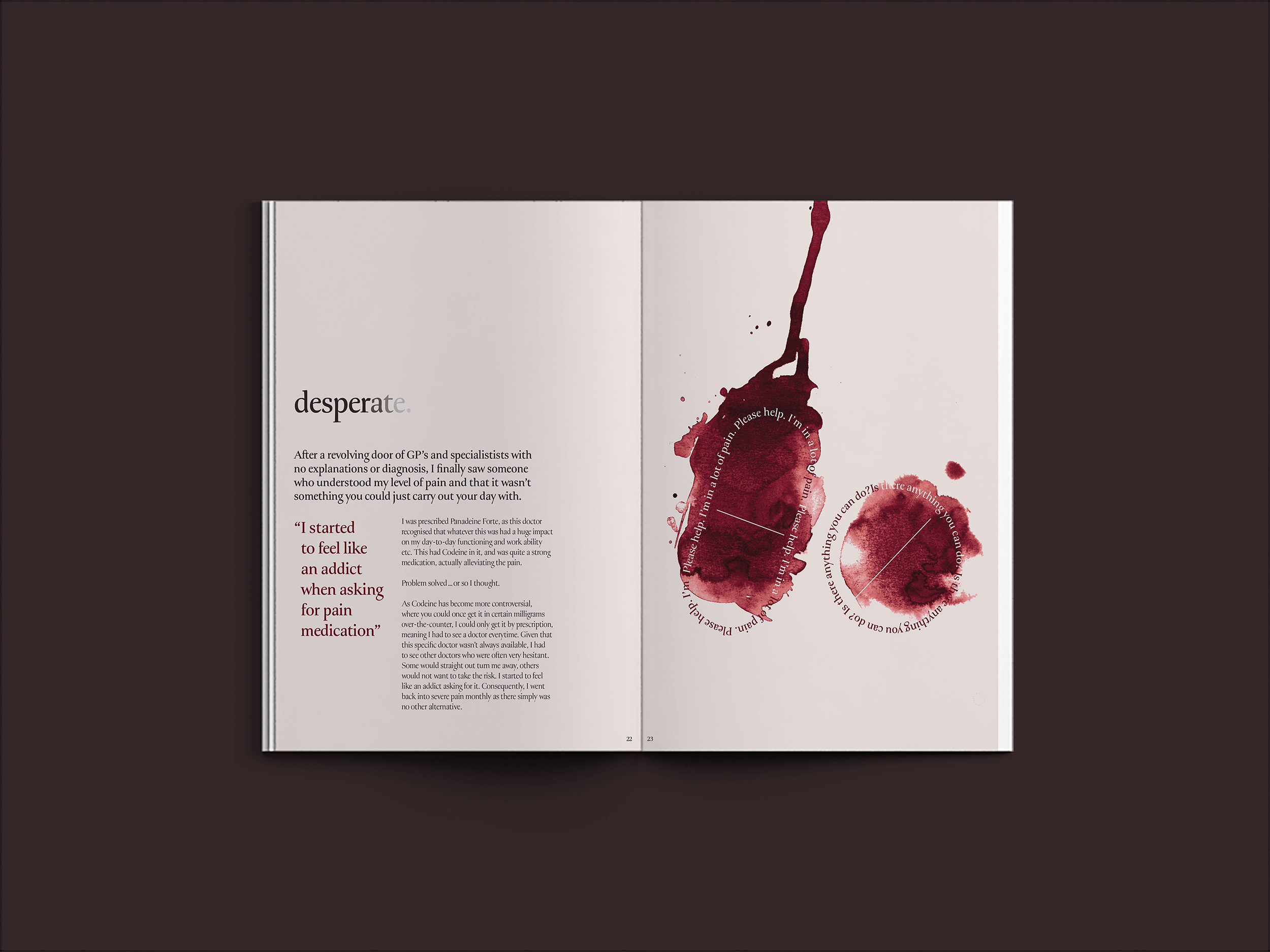 Foreign Body was my response to the ISTD brief requesting a typographic solution that reflected the theme of ‘Milestones’. I explored endometriosis as a disrupter of one of the biggest milestones in young females lives - getting ones period.